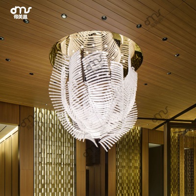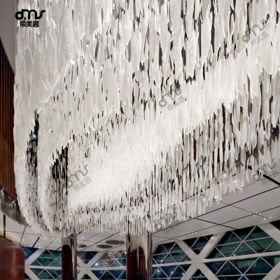 大型商場葉片琉璃玻璃水晶大吊燈不規(guī)則實心長條玻璃片大吊燈