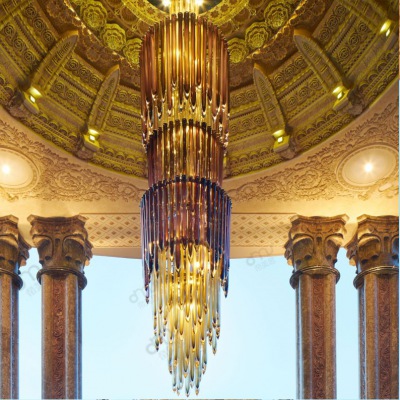 輕奢米蘭菠蘿形玻璃管水晶吊燈大型會所酒店大廳別墅售樓處燈飾