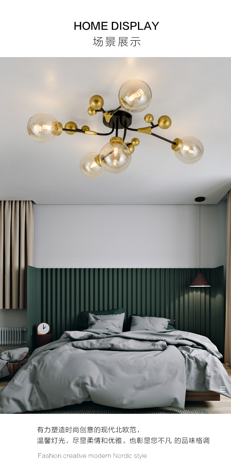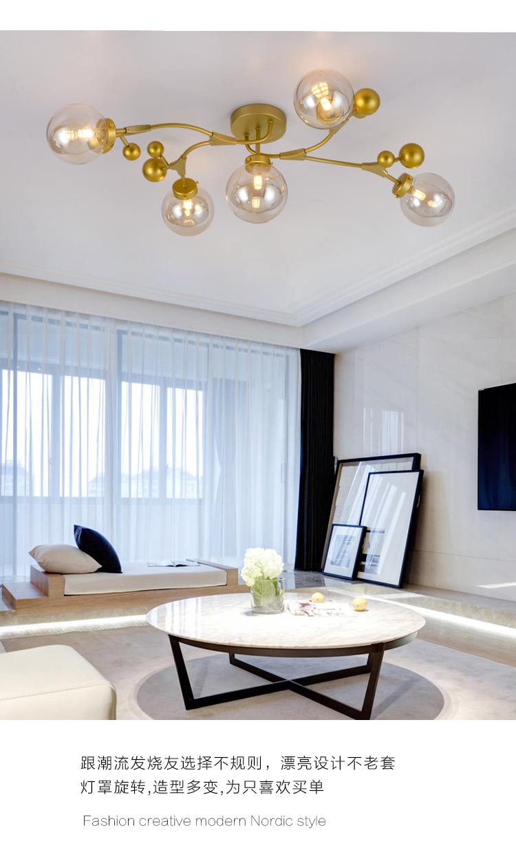 北歐輕奢溫馨浪漫主臥室房間吸頂燈工業(yè)風(fēng)客廳餐廳魔豆燈2019新款