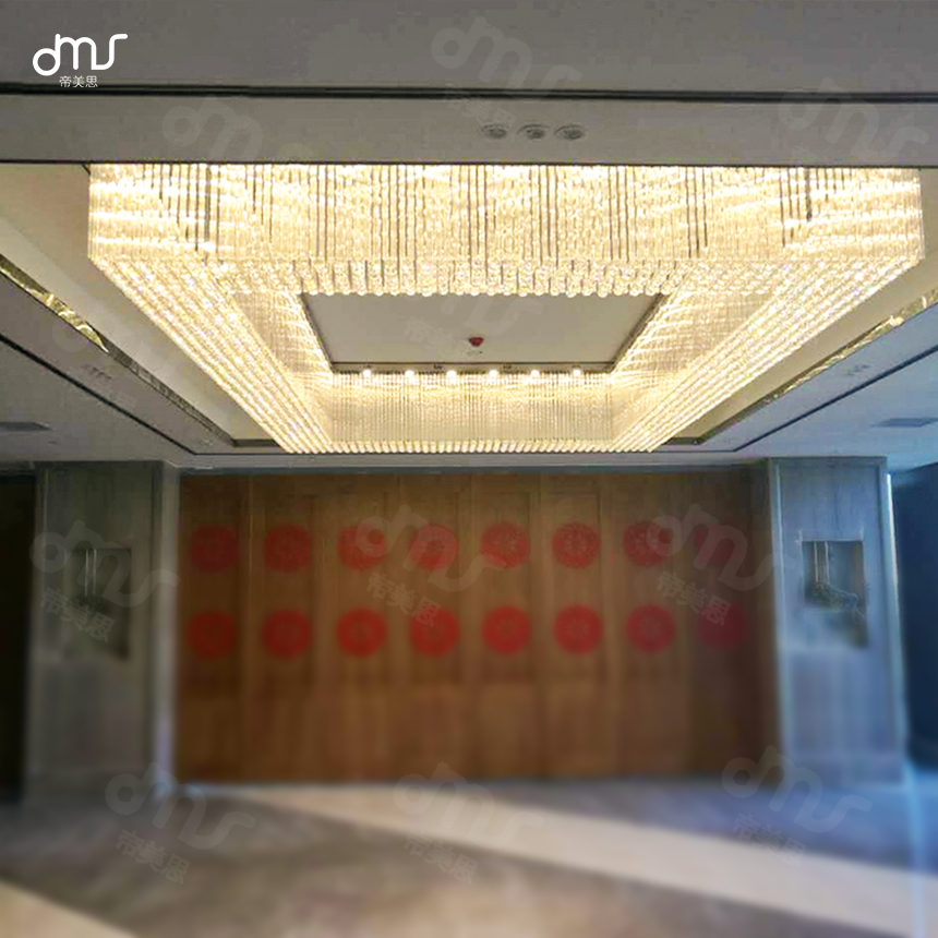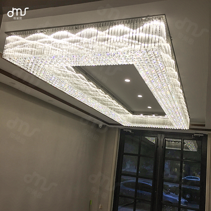 酒店會所KTV別墅豪宅非標(biāo)吸頂方形水晶燈售樓處沙盤大堂水晶吊燈