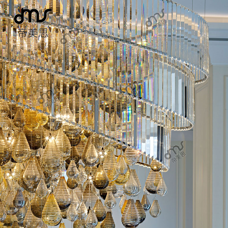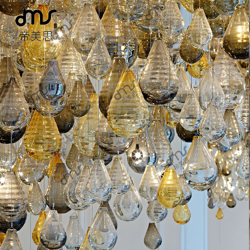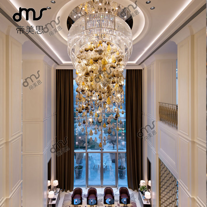 創(chuàng)意輕奢現(xiàn)代簡約葫蘆橢圓形彩色大型吊燈酒店宴會大廳大型定制琉璃吊燈