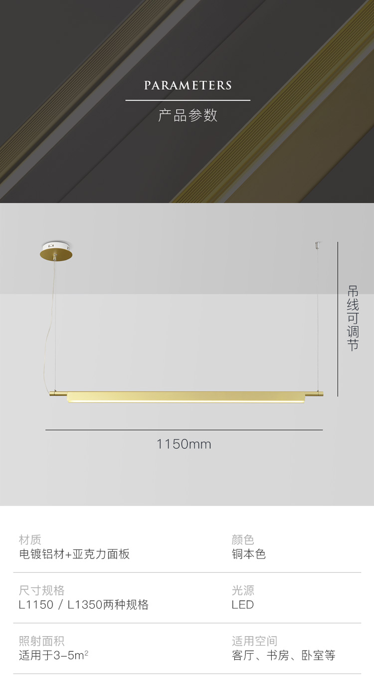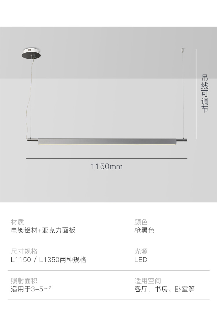 1.2米,1.5米,1.8米三種長度的吊燈